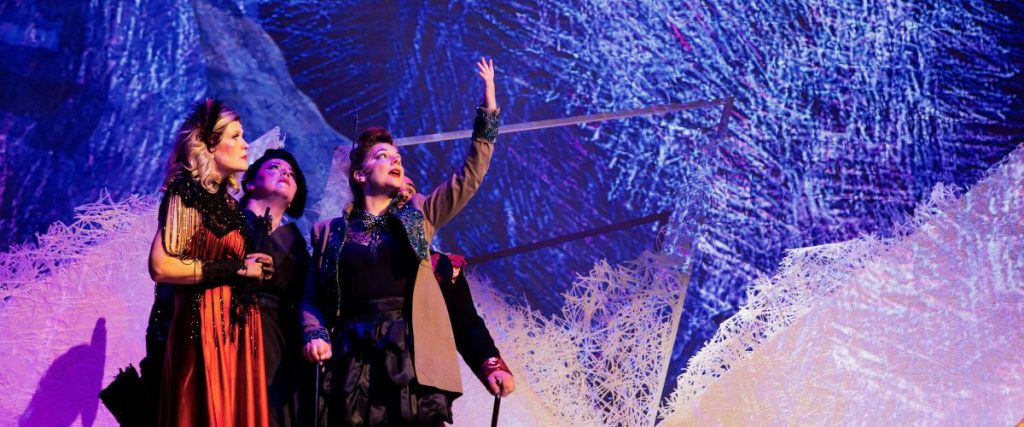 Sous la mise en scène d’Édouard Signolet et la musique de Mattéo Franceschini, cette adaptation devient une véritable expérience sensorielle. Les illustrations de Cécile Pruvot, projetées et animées tout au long du spectacle, enveloppent le spectateur dans un univers visuel foisonnant où chaque personnage, chaque décor, possède sa propre identité sonore et graphique.